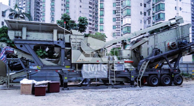 該設(shè)備在動(dòng)力部分有兩種選擇:輪胎車(chē)身,可洗擇性裝備柴油發(fā)電機(jī)組,在移動(dòng)時(shí)需半掛車(chē)頭牽引;履帶底盤(pán),通過(guò)柴油驅(qū)動(dòng)完成自主行走,后續(xù)在碎石作業(yè)中也能油電兩用。